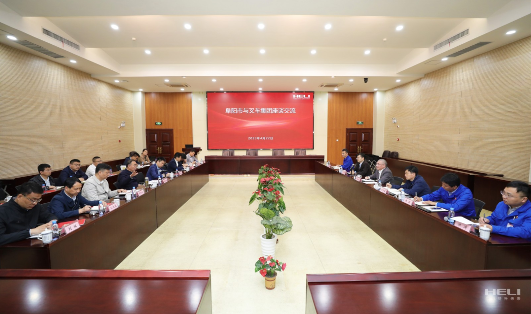 4月23日上午,阜阳市委书记孙正东一行来安徽叉车集团座谈交流,安徽叉车集团党委书记、董事长、总经理杨安国热情接待并介绍有关情况。