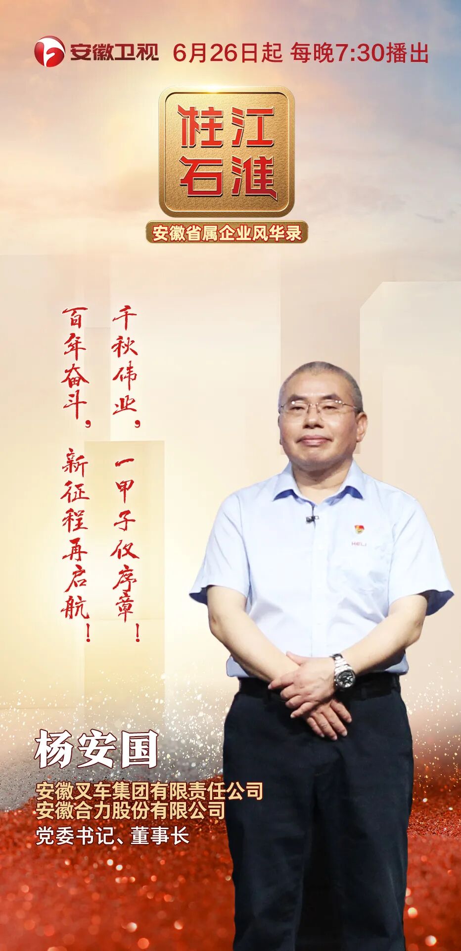 百年激荡,江淮柱石。大家好,我是安徽叉车集团有限责任公司、安徽合力股份有限公司党委书记、董事长杨安国。